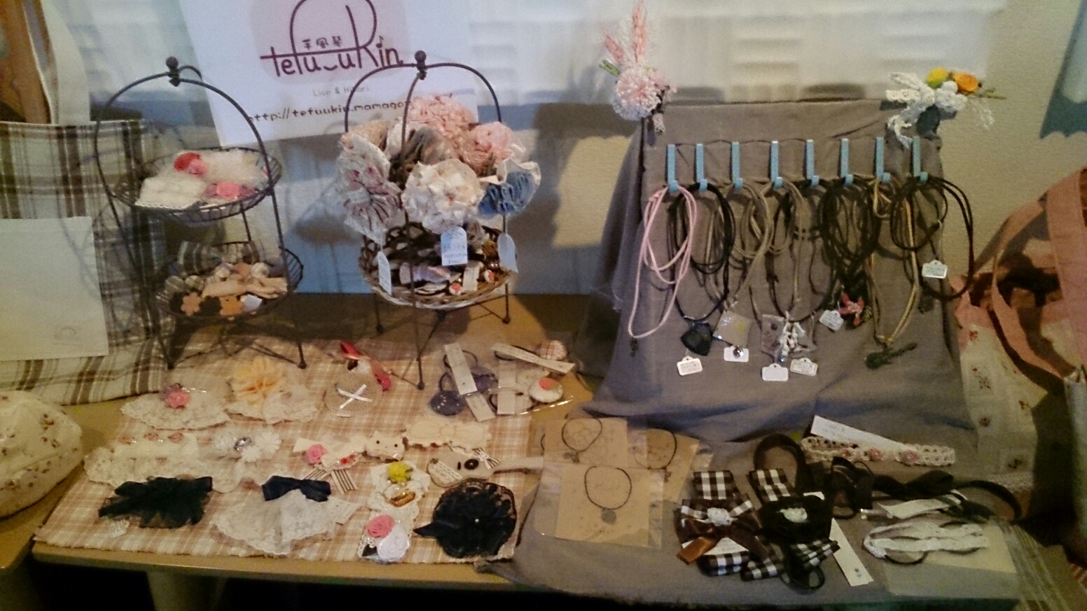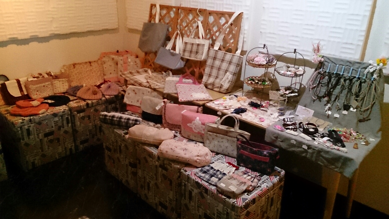 手作りのバッグ、アクセサリー、布小物など全て一点もの販売。