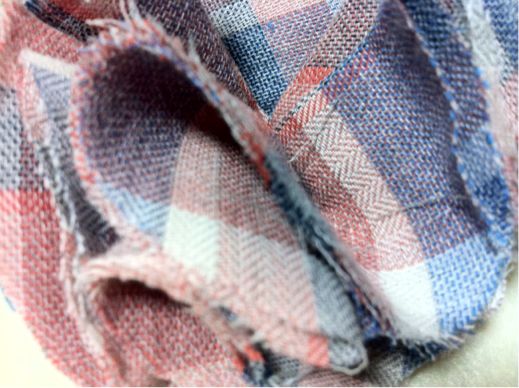 生地のアップ。赤と青に白も入ったチェック柄で、何にでも合いそうです^ ^