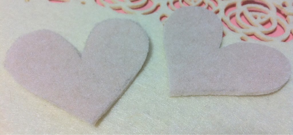 今回はハート型です♪ハート型の型紙をつくり、フェルトを同じ形に切ります(2枚)。
