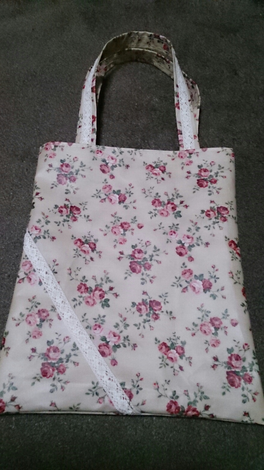 持ち手にも同じレースを使っています。