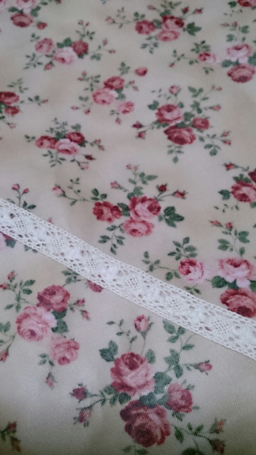 ベージュ地にバラの模様です。