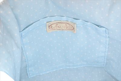 外側は裏表とも全面外ポケット!大容量です。布は水色のドット柄です。