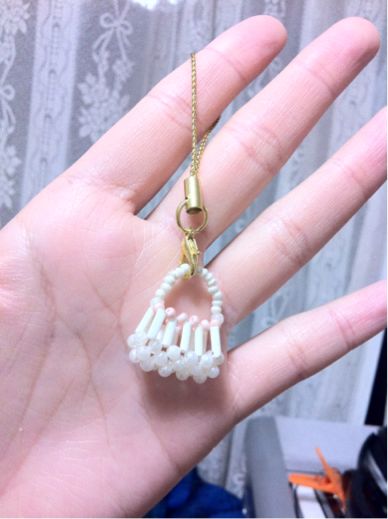 昨日に続き以前に作ったビーズ小物の紹介です。ピンク×ホワイトのプチバッグストラップ。