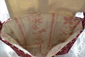 中はかわいい花柄です。ふたの裏の部分は一見無地に見えますが、ベージュ×白の細いストライプ模様です。