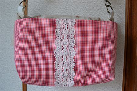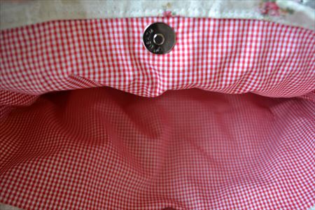 内側も赤ギンガム!マグネットホックでらくらく。