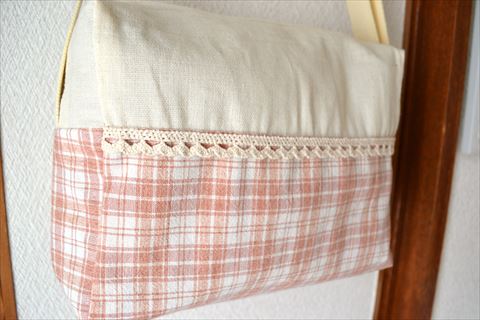 きなりとピンクチェックのショルダーバッグです。