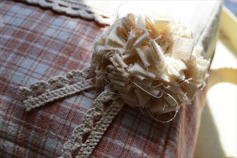 全面アップ。布の境にはトーションレースを。