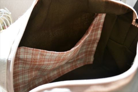 表と同じピンクチェックのポケットもついています。ポケットがひとつ増えるだけでも使い勝手がぐっとあがりますね^^♪