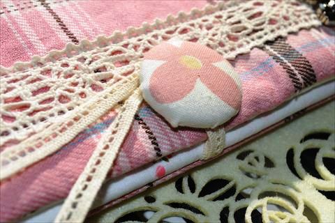 通帳ケース第二段、昨日のものとは違うピンクチェックに、くまモチーフです(^▽^*)