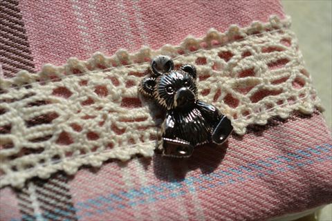 オフホワイトのトーションレースの上にはくまモチーフをひとつ。