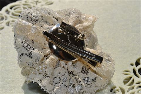 コサージュ金具部分。ピンとクリップの2wayの金具にしました。