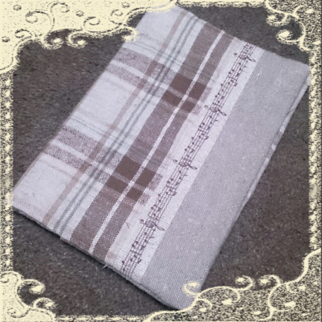 ブックカバーは音符柄のテープをアクセントに、裏側には手風琴のロゴタグも付けました。