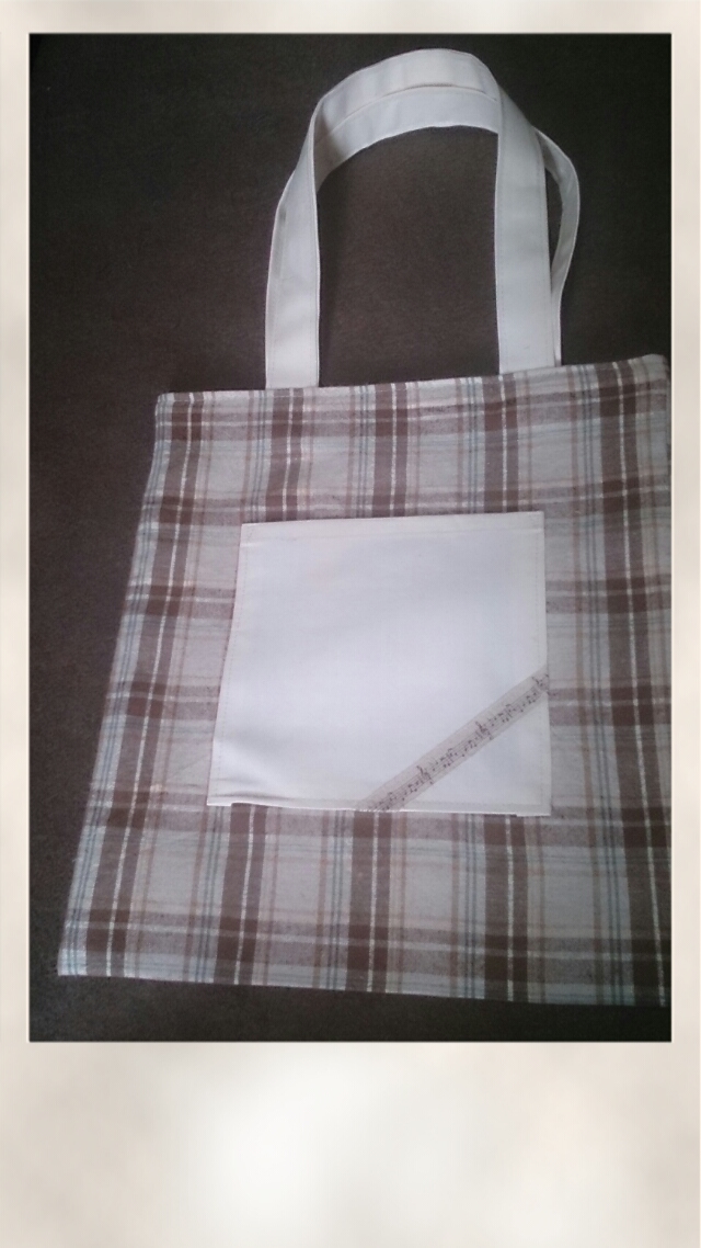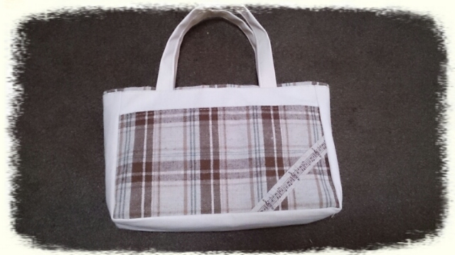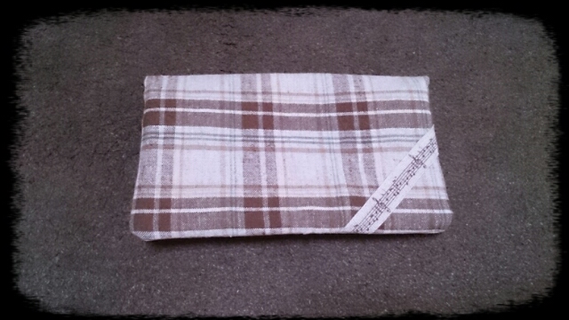 先日ご紹介させていただきましたチェックの生地を使ったブックカバーとポーチが出来上がりました。