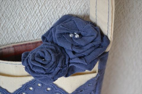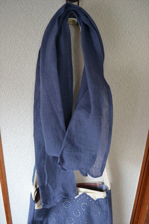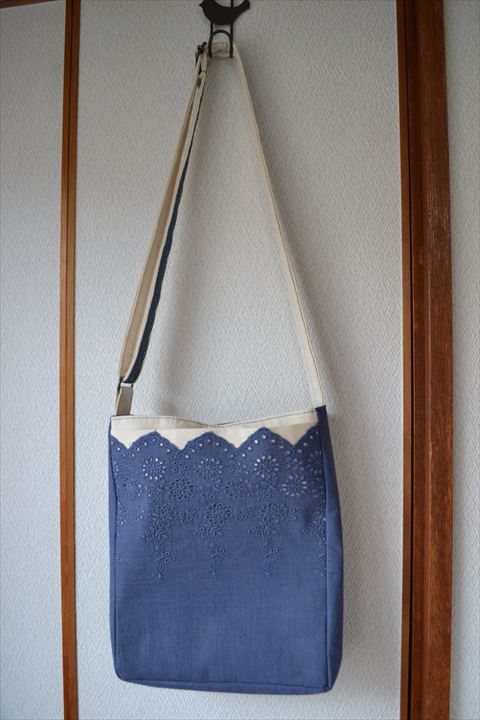 シンプルで何にでも合わせやすい、まちはあるけれどすっきりとしたバッグ、ということで製作。上品なブルーのインド綿はスカラップが可愛い生地です。手触りもとても良いです◎