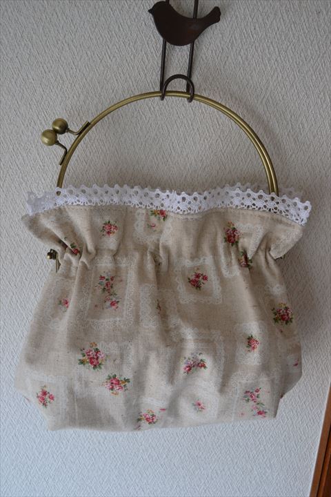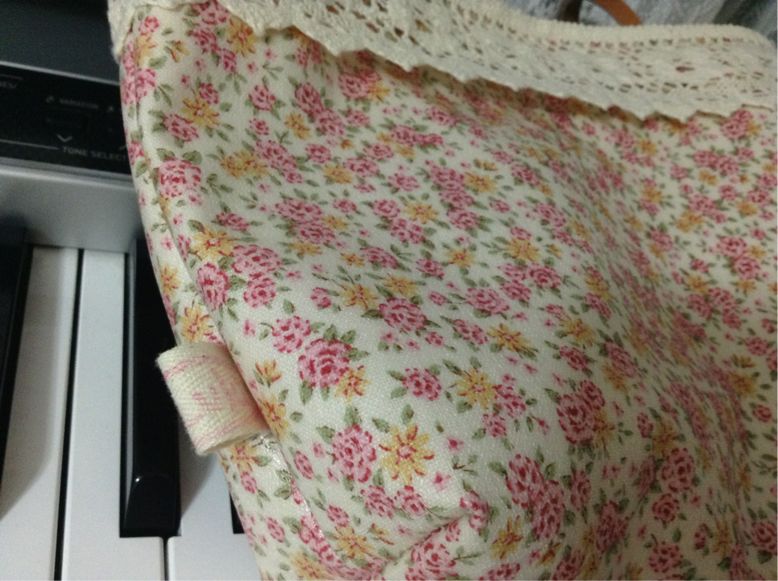 裏表同じデザインです。入れ口には白のトーションレースを。