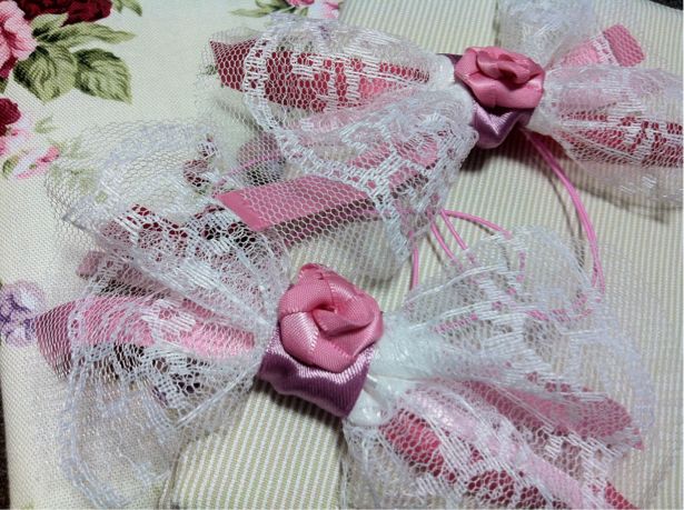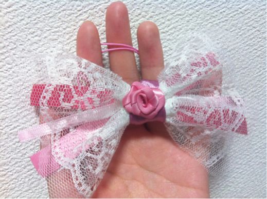 昨日作り上げられなかった女の子用ヘアゴム、完成しました♪( ´▽`)