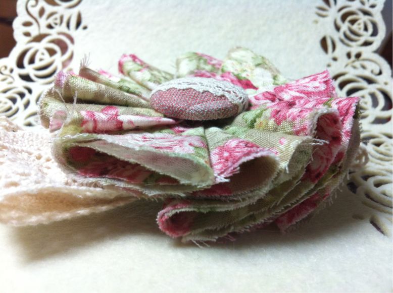 以前ご紹介しました、カジュアルな切りっぱなしコサージュと同じ生地、別デザインです^ ^