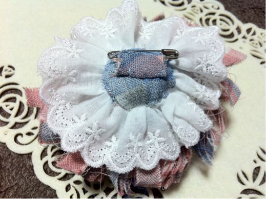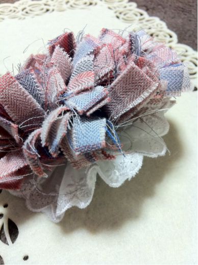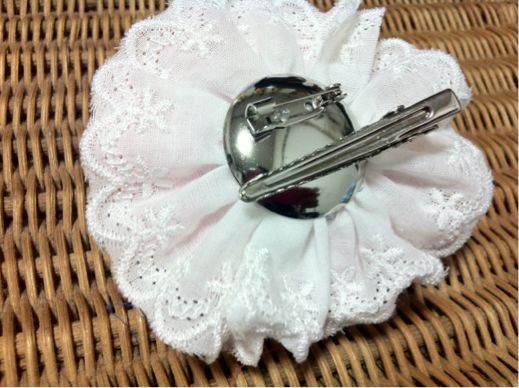 左下のピンクのバラはレースやパールも縫い付けてミニコームに。