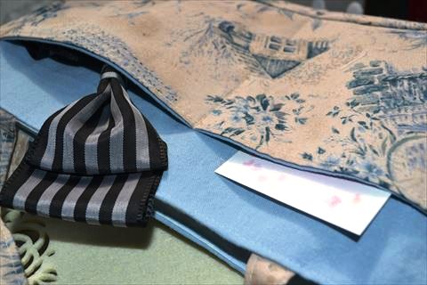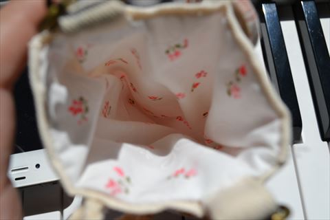 こちらはベージュ(オフホワイトより?)に淡いピンクの花柄の生地を使用しました^^