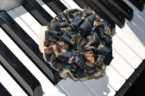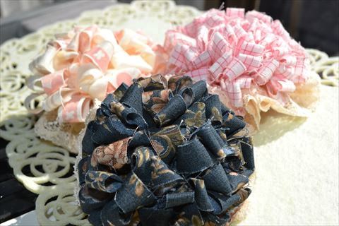 一昨日ご紹介したバッグとセットのブローチはこれよりひとまわり小さめに作ってあるので、色味の合うものを2個付けしても可愛くなりそうですね♪