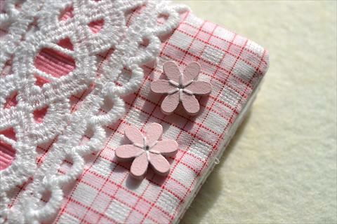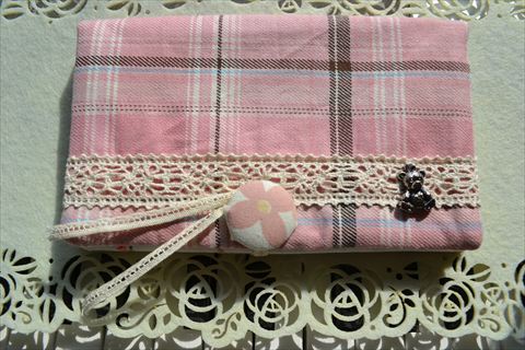 通帳ケース第二段、昨日のものとは違うピンクチェックに、くまモチーフです(^▽^*)