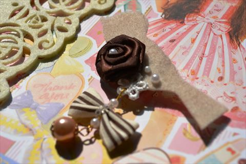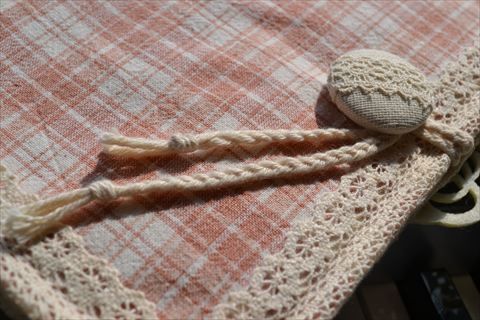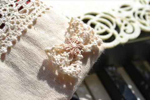オフホワイトのトーションレースの上にはくまモチーフをひとつ。