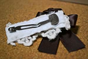 ちょっと色がうまくでませんでしたが、前の記事のウサギブローチと同じ茶色のサテンリボンです。