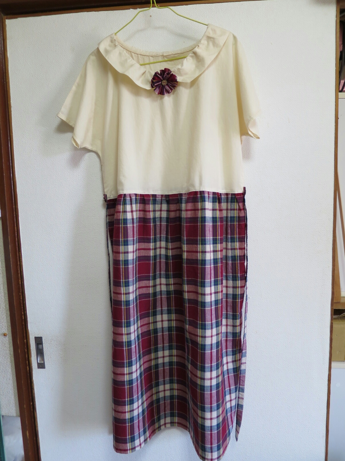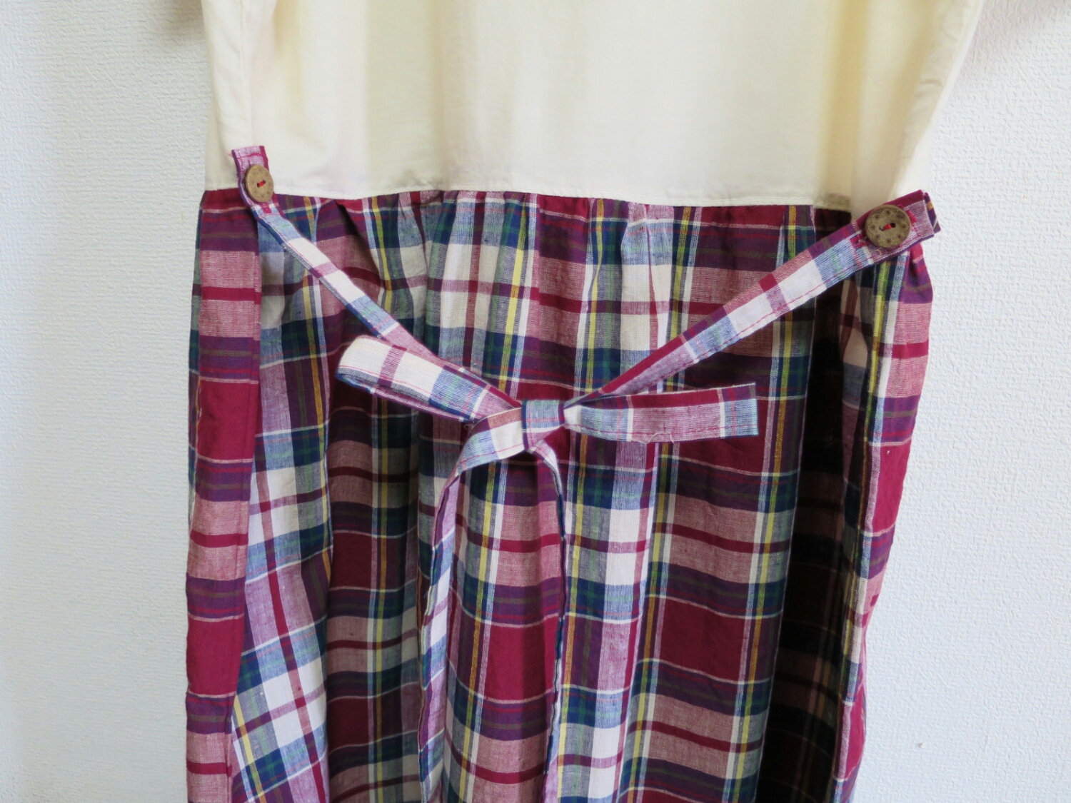 ワンピースのスカートに使ったチェックをアクセントに