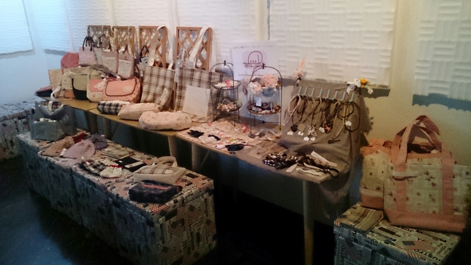 手作りのバッグ、アクセサリー、布小物など全て一点もの販売。