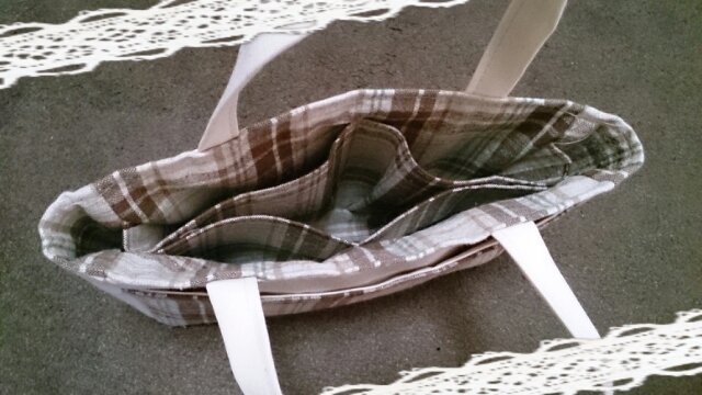 先日ご紹介させていただきましたチェックの生地を使ったブックカバーとポーチが出来上がりました。