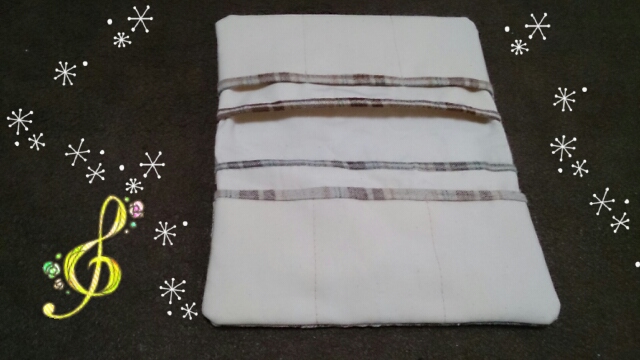 ブックカバーは音符柄のテープをアクセントに、裏側には手風琴のロゴタグも付けました。