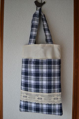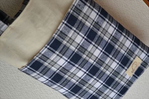 ペタンコバッグ。紺チェック×きなり《Lico作》