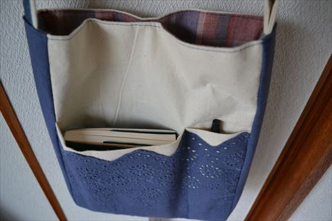 シンプルで何にでも合わせやすい、まちはあるけれどすっきりとしたバッグ、ということで製作。上品なブルーのインド綿はスカラップが可愛い生地です。手触りもとても良いです◎