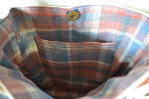 内側は明るいチェックで見やすく!もちろん内ポケットつきです。マグネットホックで留められます。