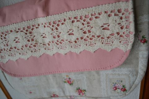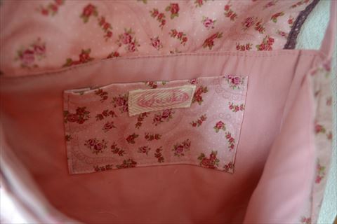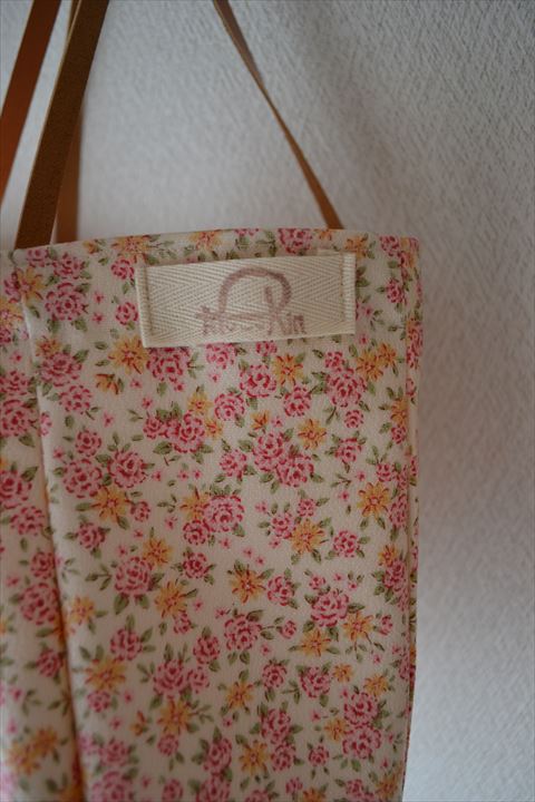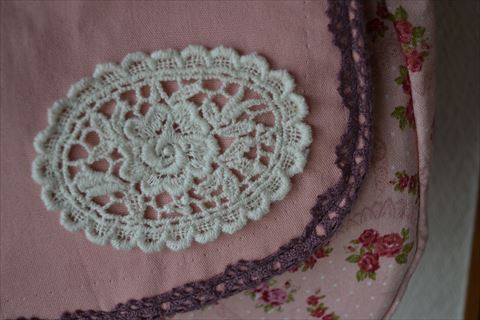 前回のラミバッグより、ほんのちょっと大きく。レースなしでシンプルにまとめたので、生地の小花柄が引き立ちます。