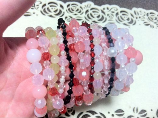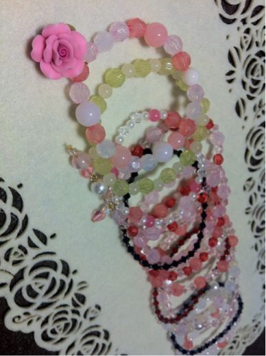 休みの日に一気につくりました!つくりも作った15本のゴムテグスブレスレットです(^^)