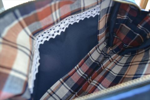 内側はチェックの生地で!明るい色で中のものが見やすいです。