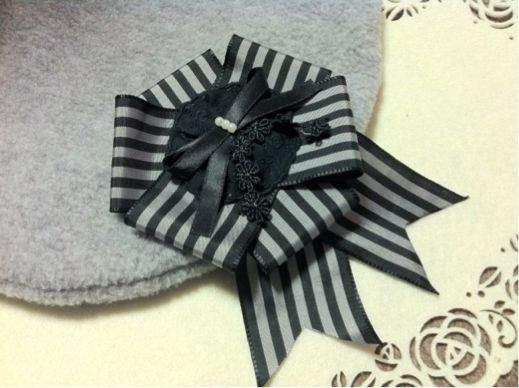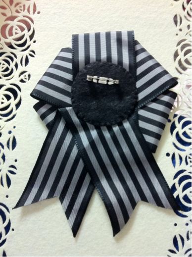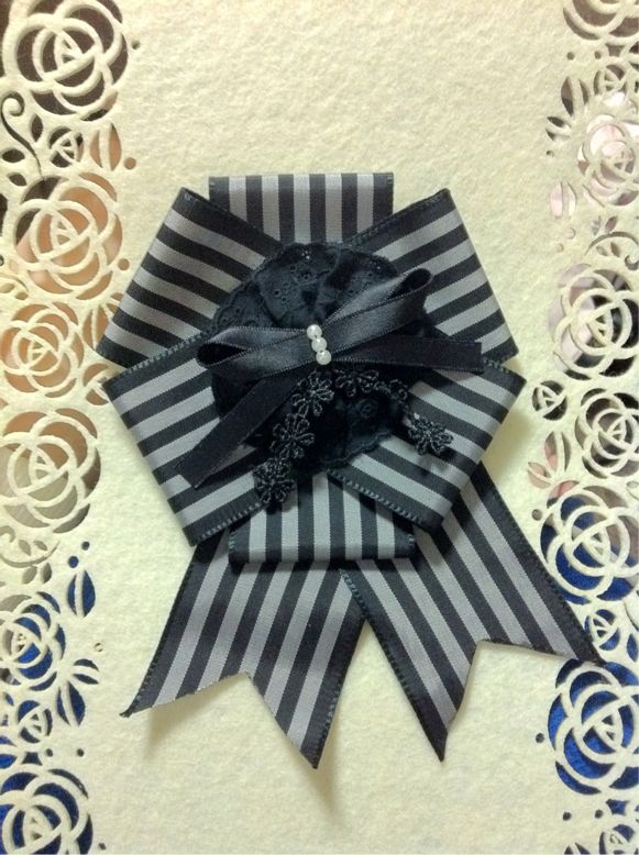 グレー×ブラックのシンプルながら存在感のあるロゼッタブローチ(名称に自信がありません(・_・;たぶんロゼットとかロゼッタとかそんな名前)です^ ^