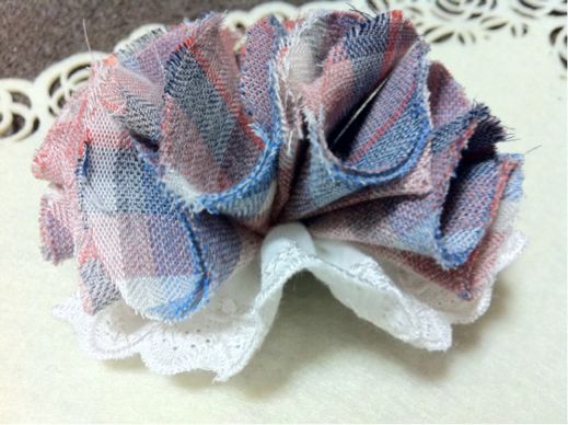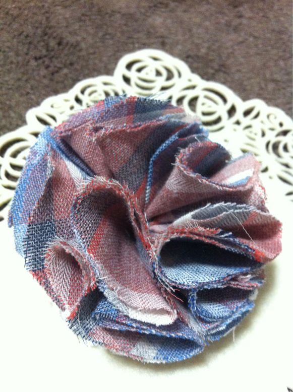 以前ご紹介しました、カジュアルな切りっぱなしコサージュと同じ生地、別デザインです^ ^