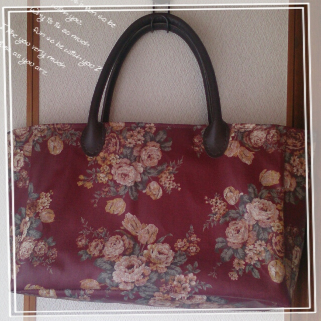 焦げ茶色の合皮の持ち手を使って、キチンとした感じに仕上がりました。