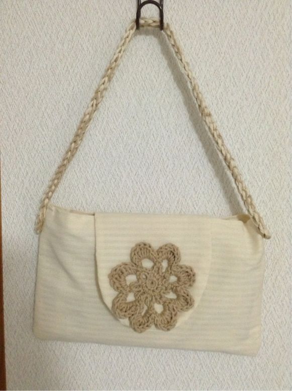 取手とモチーフ部分は、2種類の糸を合わせて編みました(o^^o)