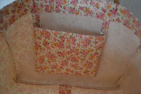 前回のラミバッグより、ほんのちょっと大きく。レースなしでシンプルにまとめたので、生地の小花柄が引き立ちます。