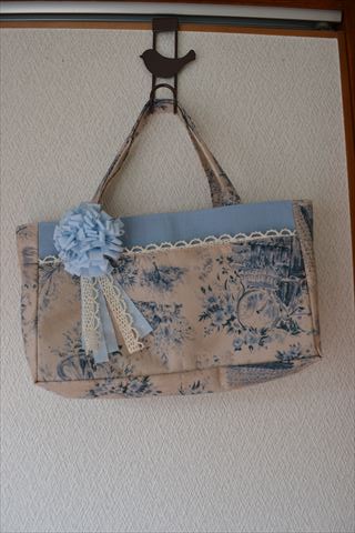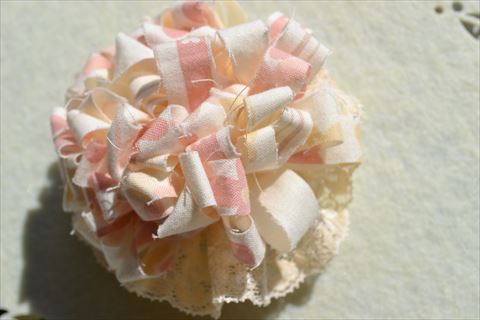 こちらはベージュ(オフホワイトより?)に淡いピンクの花柄の生地を使用しました^^
