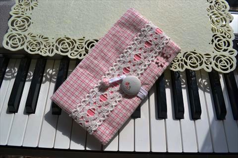 通帳ケース第二段、昨日のものとは違うピンクチェックに、くまモチーフです(^▽^*)