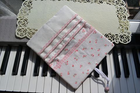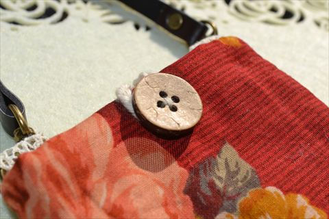 縦に3つのカードポケット。入れ口にはトーションレースを。後ろには大ポケットも一つ^^